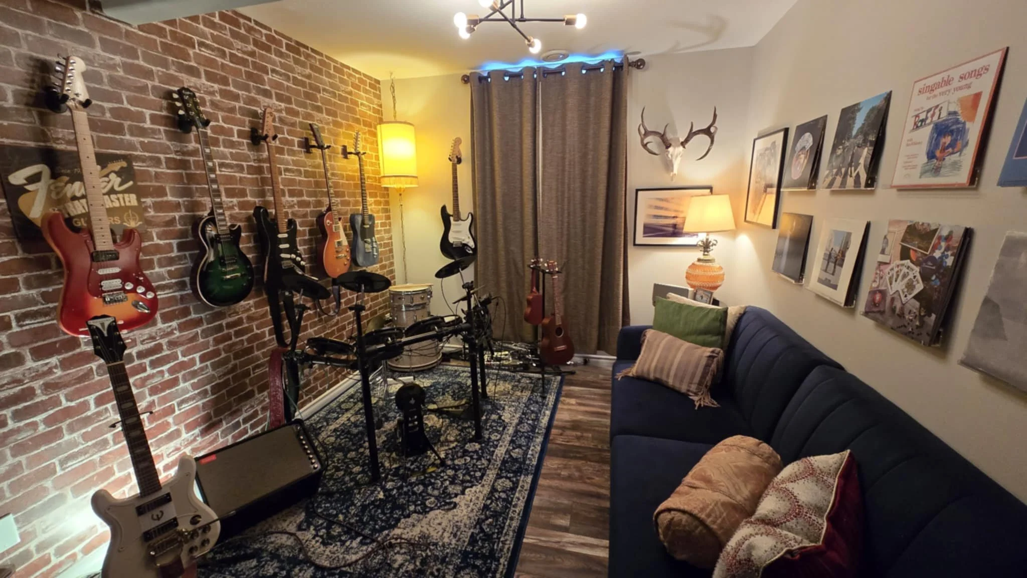And although it doesn’t look like it right now other than a futon, the music room is actually another bedroom, complete with walk-in closet. This “brick” is the only wallpaper in the house that wasn’t professionally done and while I’ll never do peel-and-stick wallpaper again because it took ages & I swore SO MUCH, it turned out pretty good!